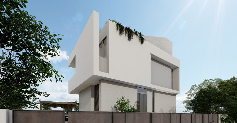 Private house located in the suburb area of Porto Rafti, Attiki. The street boundary & arrival façade hold minimal openings to ensure privacy from the public whilst the layers of the building unfold as one transitions to the garden exterior. The objective of this house was to make full use of open plan living and key features to create the perception of a larger space.